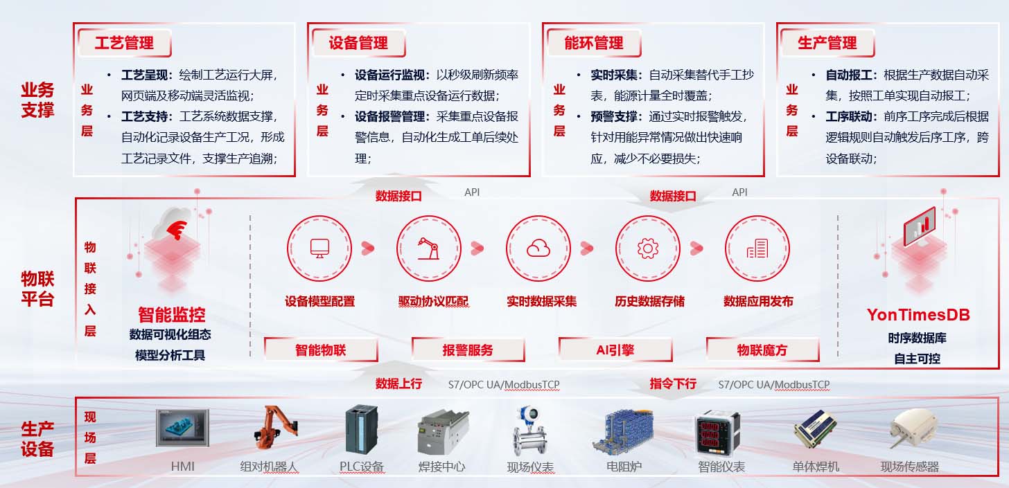 用友AIoT平台构建起涵盖设备连接、数据处理、智能分析的一体化能力矩阵,为智能工厂建设提供坚实的 “数字底座”。