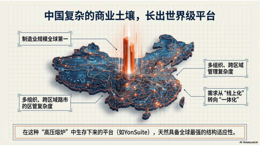 平台型SaaS的核心壁垒,是对复杂经营场景的适配能力——而中国,是全球企业经营场景最复杂、规模最大、增长最快的市场:制造业规模全球第一,供应链复杂度领先;多组织集团企业集中,跨区域、跨国家管控需求复杂;数字经济高速增长,企业数智化需求从“线上化”转向“一体化”。