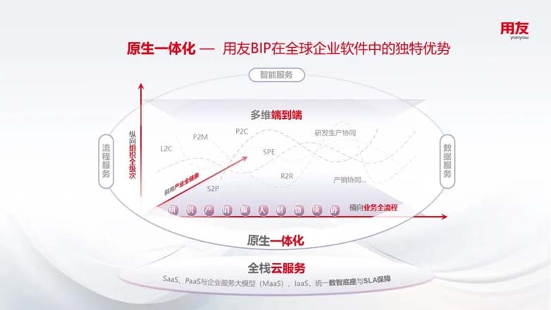 用友 BIP 领先的产品能力,是用友全球化竞争力的坚实支撑。从产品矩阵来看,用友 BIP 构建了一个全面而丰富的生态体系,涵盖平台层、模型层、领域应用 / 服务层、ISV 及专业服务生态层。各层之间相互协作、紧密配合,为企业提供了一站式的数智化解决方案。其中,原生一体化是用友 BIP 最大且独特的优势,它实现了 10 大应用领域的无缝拉通,将流程服务、数据服务、智能服务深度融合,同时确保平台、模型、领域应用与 ISV 生态产品的原生一体化。这种一体化的设计理念,使得企业在使用用友 BIP 时,能够打破部门之间的壁垒,实现业务流程的高效协同,充分发挥数据的价值,提升企业的整体运营效率。
