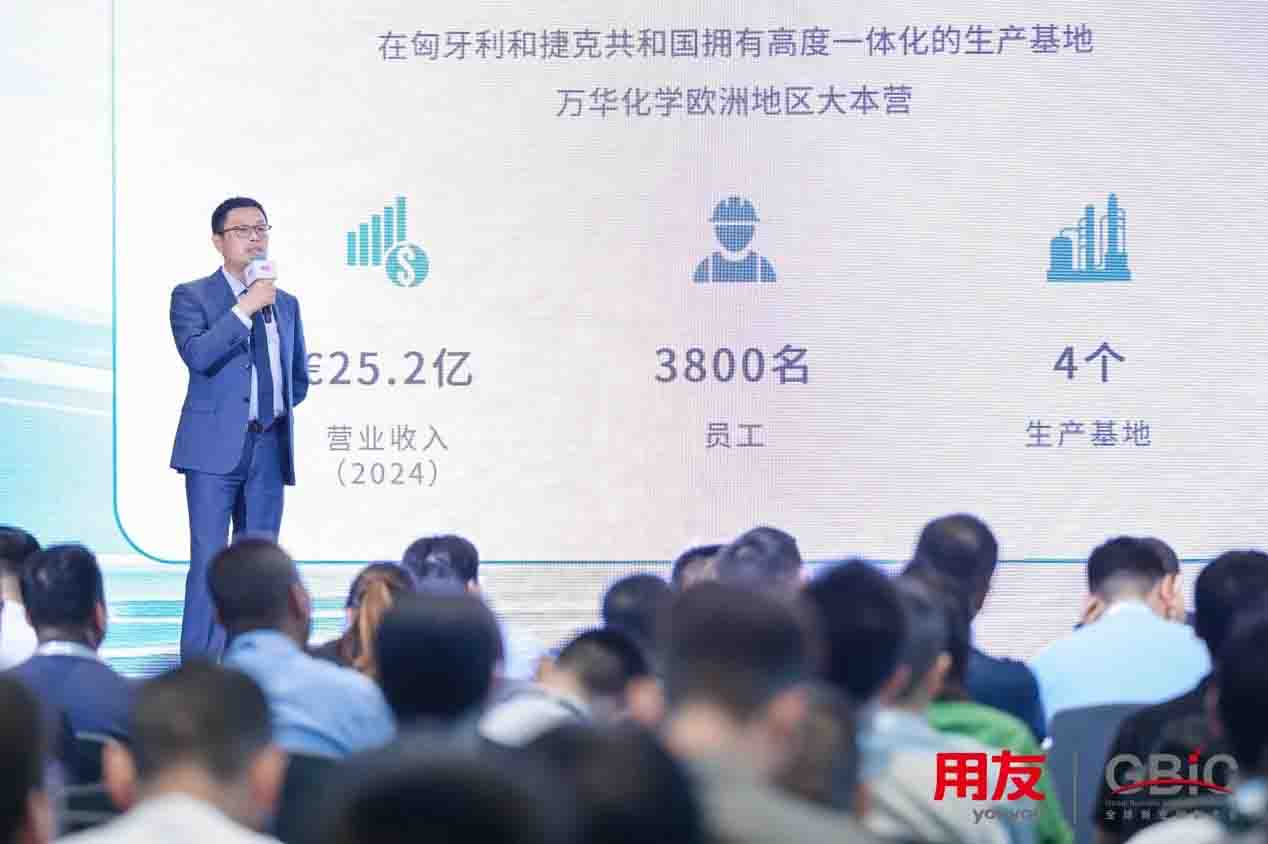 匈牙利万华宝思德CIO王振华分享了《国际化支撑:以数智平台赋能全球化业务在线》。他介绍了万华化学及宝思德化学的发展历程与业务情况,阐述了全球化运营中面临的文化、法规、成本、效率等挑战。基于此,万华宝思德选择与用友合作,搭建了以标准体系、开发运维为基础,依托三大中台的技术平台和业务架构,重点介绍了基于BIP平台落地的SDS项目,展现了用友BIP在多语协同、合规安全等方面的优势。