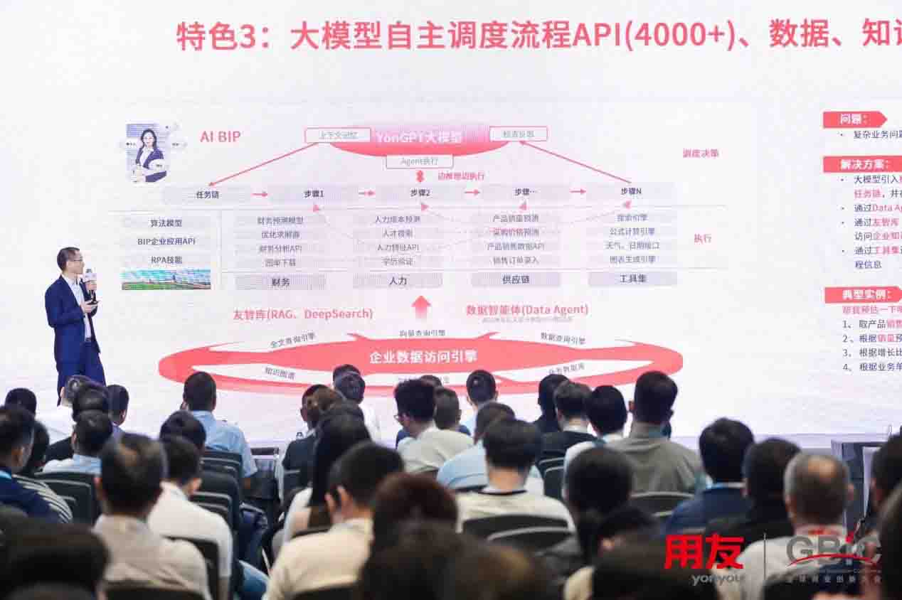 用友执行副总裁、CTO樊冠军率先致辞。他强调了用友平台“深懂业务”的特点,其涵盖的十大领域贯穿企业完整业务链条,还介绍了用友BIP平台的构成,包括应用与开发平台、数据平台、集成平台、智能平台、技术平台共6大平台,其中,技术平台致力于自主可控,可跨云适配。此外,作为AI入口的友空间,在企业办公中展现出便捷高效的优势。