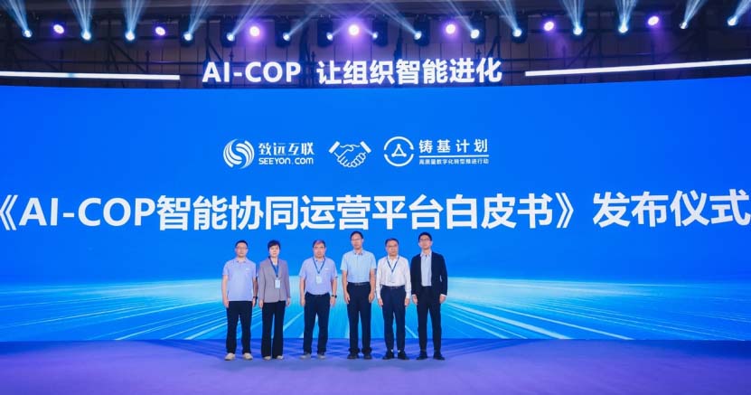 会上,致远协同研究院携手铸基计划、华为云、北京交通大学“人智协同”课题团队联合发布《AI-COP智能协同运营平台》白皮书,系统阐释了在AI驱动下组织管理与运营方式的范式变革。白皮书以理论与实践深度结合的方式,提出AI时代“液态组织”进化路径,围绕“组织智商”“人机共生”“多智能体系统”等理论,介绍了AI-COP平台如何以大模型、AI智能体、知识中台等数智基建,构建智能运营新基座,助力政企从传统数字化跃迁至智能化、生态化的新阶段。