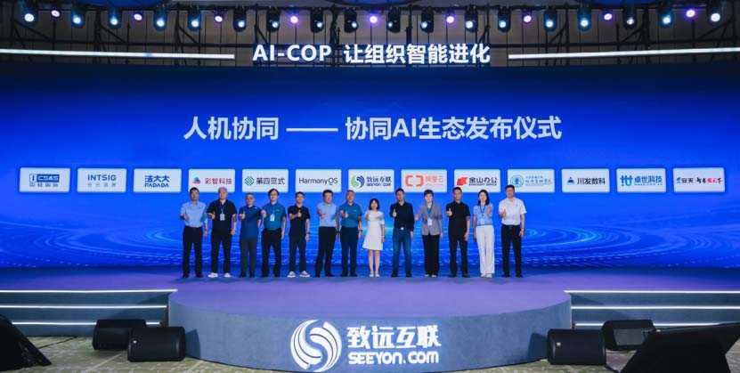 在AI时代,致远基于与华为云的AI协同算力、与第四范式的智能决策、与卓世科技的端到端方案、与彩智科技的智能问策、与金山办公的智能文档等,聚合各方算力、模型、数据与场景能力,共同构建可持续演进的智能化生态体系。会上,致远携手华为鸿蒙、阿里云、金山办公、第四范式、卓世科技等产业链龙头企业、科研机构,共同见证“协同AI生态”发布仪式。