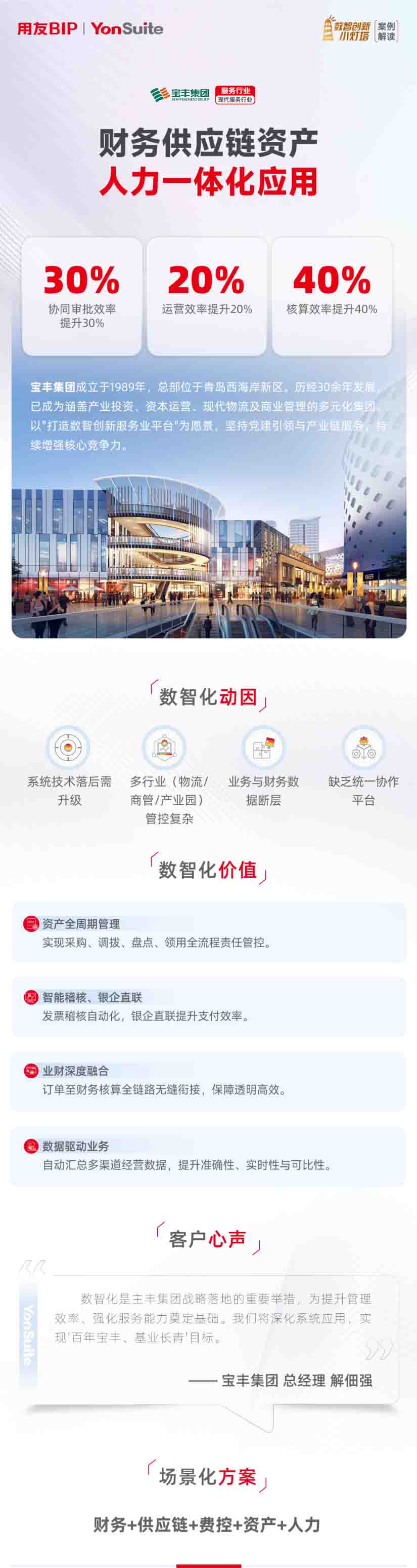 一场以 “轻装上阵” 为目标的数智化变革,由此拉开序幕。宝丰集团携手用友YonSuite,以 “五维一体” 一体化平台重构管控体系,不仅破解了服务业特有的管控困局,更让这家30年的企业重新焕发了敏捷活力。