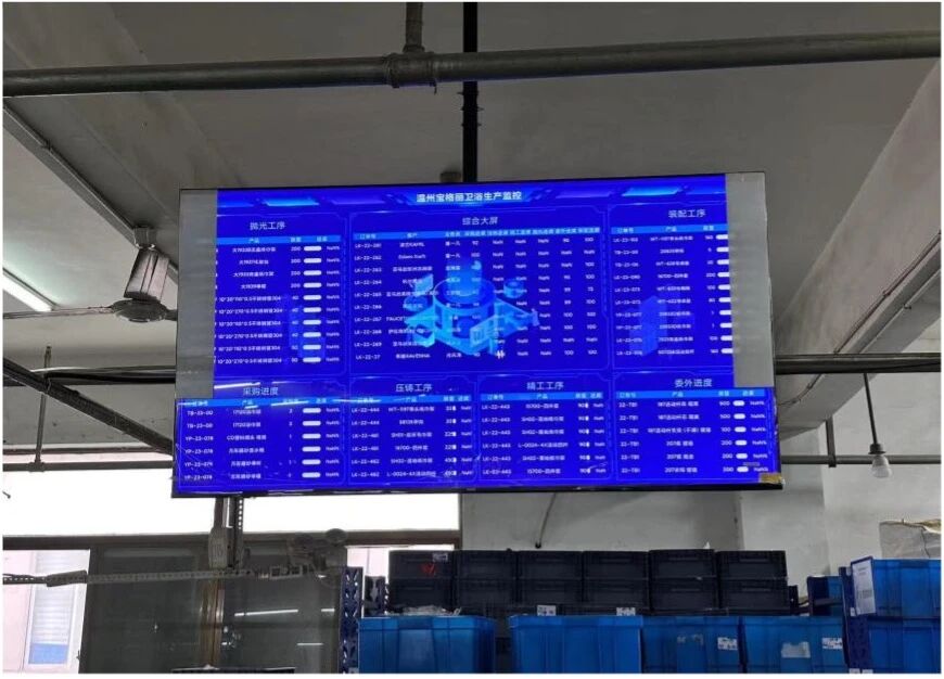 每天当阳光刚透过厂房窗户洒进车间,温州宝格丽卫浴的生产区已进入有序节奏——工位前,工人拿起手机对着工件上的二维码轻轻一扫,“滴”的提示音后,完工信息瞬间出现在车间大屏的进度栏里;仓库角落,管理员扫码确认领料,电脑屏幕上的库存数量随即更新;财务办公室内,前一天的生产数据已自动整理成表,成本明细清晰罗列。