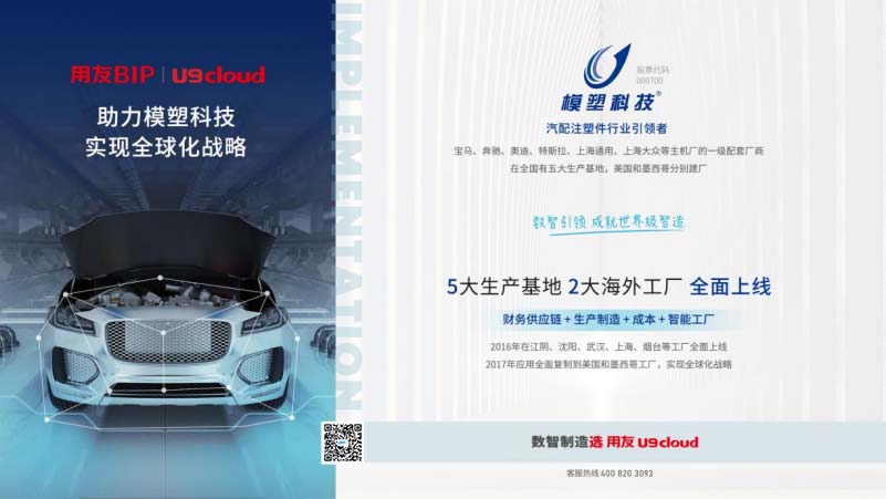模塑科技借助U9 cloud,实现了成品零库存,半成品库存由原来的1个月降低到现在的1周,部分降低到2-3天。在江阴、沈阳、武汉、上海、 烟台等工厂全面应用的基础上,已经将应用复制推广到美国和墨西哥工厂,有力支撑了公司“低成本、大规模、高速度”战略的实现。
