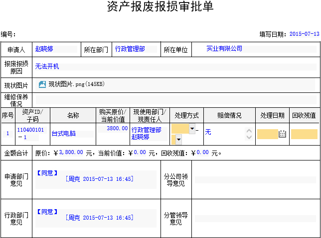 各种与资产相关的审批(如申购、调配调拨、报废报损等)分散,资产相关信息的来龙去脉被人为割裂,无法获知完整的信息。